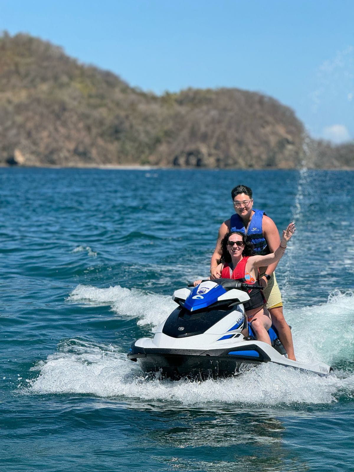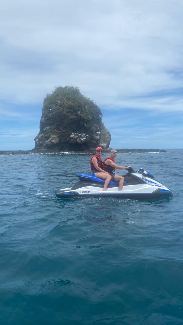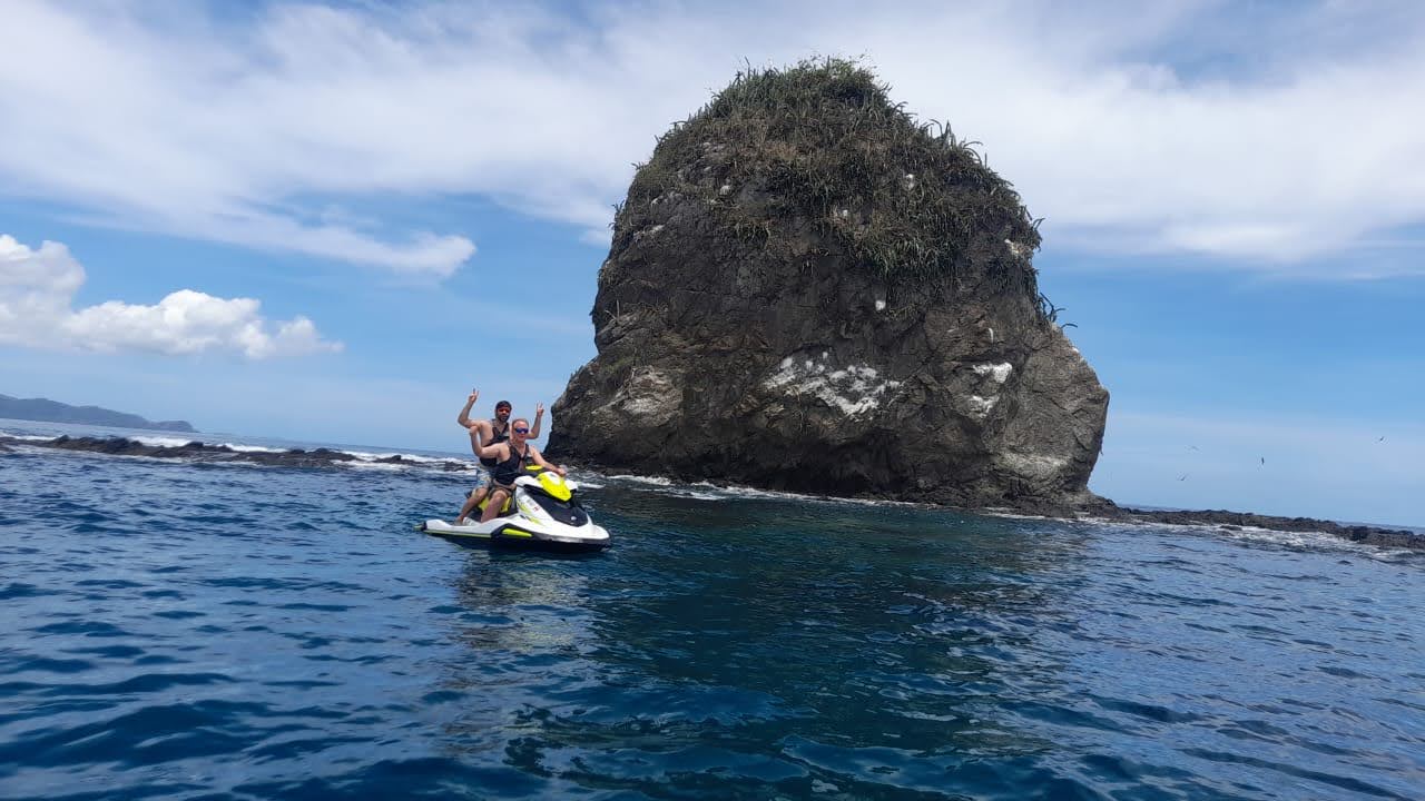 Do you love adventure and adrenaline? This is a two-hour activity where you will explore the bay around the Papagayo Peninsula. You will drive the jetski you are on and you will follow the guide who will go on another jetski. He will take you to spectacular places to see monkeys, look for dolphins and other animals. If you want to snorkel they will take you to the best snorkeling spot in the entire bay. We pass around Monkey Head Island where you can take some beautiful pictures close to it. After that, we explore the caves located in Huevo Bay which is a beautiful and pretty white sand beach, and up the caves there is a super incredible viewpoint where you can see almost the entire bay and it is spectacular for some pictures. This is the description of the jetski tour, but if you just want to rent a jetski for half an hour or an hour to have a great time for a while, you can do that too.